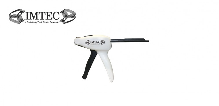 IMTEC Universal Dispensing Gun for dispensing Soft and Hard Reliner. Comes with 3 plungers and 2 adapters to accommodate several cartridge sizes.